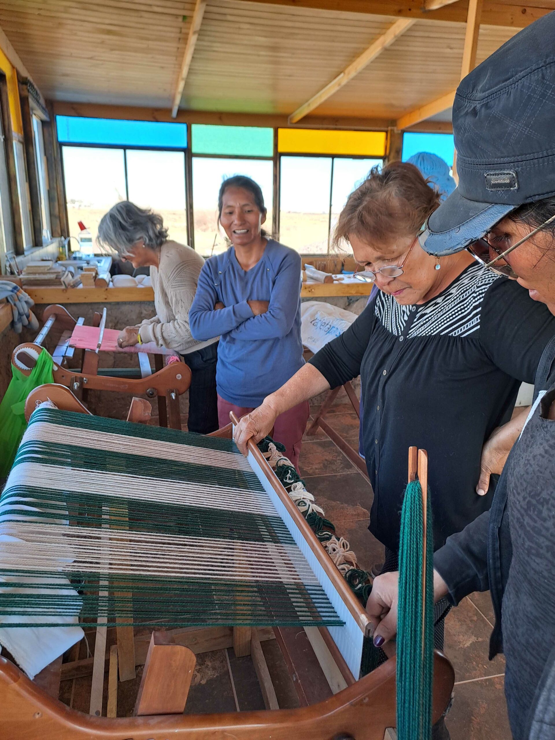 El taller Ckaitchi, de la Murtra Santa María del Silencio, sigue dando vida, acogiendo vida, creando vida. Las tejedoras de la agrupación Suyis Liq’cau, de Chiu-Chiu, realizan sus clases de telar en este lugar. Actualmente, tejiendo en el telar María o telar de peine con la invaluable ayuda y conocimiento de Irene Muraña con esta herramienta textil.