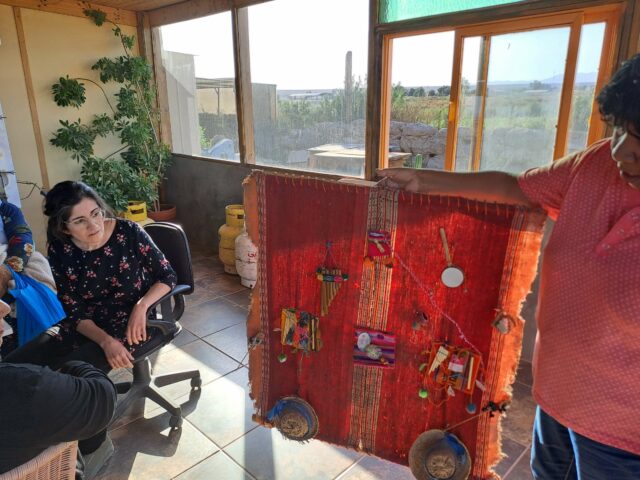 Al Taller de tejedoras Suyis Liq’cau de Chiu-Chiu, se nos ha invitado a participar en un proyecto financiado por el Ministerio de Cultura, el cual consiste en una exposición que se hará en Santiago para hacer tomar conciencia del patrimonio cultural y arqueológico de esta zona del norte de Chile que está diseminado por diversos museos del mundo y que fue sustraído durante la Expedición Científica que hubo entre los años 1862-1866, financiada por la corona española durante el reinado de Isabel II. Concretamente, nuestra participación consistirá en la elaboración de unos textiles que expresen esta realidad, con el deseo de que especialmente los cuerpos momificados de los ancestros puedan ser devueltos a su territorio. Actualmente estamos trabajando en el diseño de los textiles en colaboración con la artista visual chilena Marcela Moraga.
