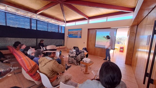 Figueroa habló sobre los paisajes mineros prehispánicos del desierto de Atacama: reflexiones desde el cooperativismo transdisciplinar. Se refirió a la paragénesis, secuencia de formación de minerales en un yacimiento o roca que indica qué minerales se formaron y en qué orden. Y cómo se dan asociaciones entre distintos minerales, por ejemplo: turquesa con atacamita, pseudomalaquita con crisocola… y los subproductos distintos que se dan en cada uno de los distritos mineros. Distritos mineros prehispánicos de norte a sur: Collahuasi, El Abra, Conchi, Chuquicamata, Tuina, San Bartolo, Socaire, Chulacao y Cerro Verde.